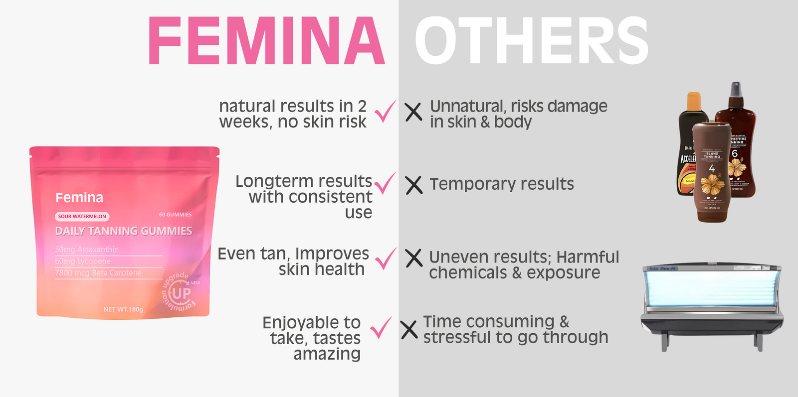 Our vegan-friendly gummies are designed to enhance your skin's resilience to sun exposure, allowing you to tan more easily and much much faster! Just TWO (2) gummies contain 2-9x more active ingredients than most leading Lycopene & Astaxathin supplements combined.